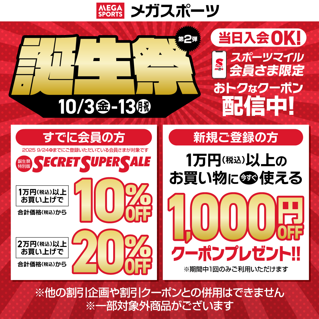 メガスポーツ新ひたちなか店(メガスポーツシンヒタチナカテン) メガスポーツ、はじまりのリスタート。 \\誕生祭 第2弾//開催