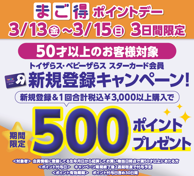 Toys“R”Us(トイザラス) 50才以上の方対象!新規登録キャンペーン