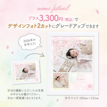 プラス3300円で、フレームをデザインフォト「2カット」にグレードアップできます!