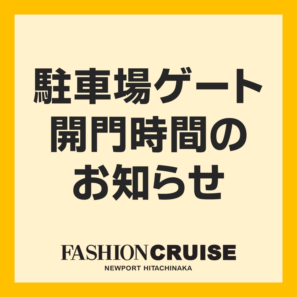 10月 駐車場ゲート 開門時間のお知らせ 近隣の交通規制に伴い、ファッションクルーズ側施設「駐車場ゲート」開門時間を以下の通り、変更