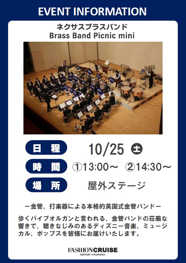 10/25(土) Brass Band Picnic mini -Nexus Brass Band- 「金管、打楽器による本格的英国式金管バンド」 歩くパイプオルガンと言われる、