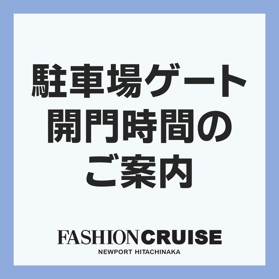 4-5月 駐車場ゲート 開門時間のお知らせ 近隣の交通規制に伴い、施設「駐車場ゲート」開門時間を以下の通り、変更させていただきます。