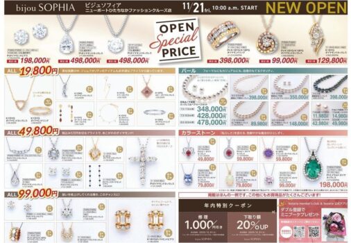 OPEN特別価格にてご準備しております。皆様のご来店をお待ちしております。
