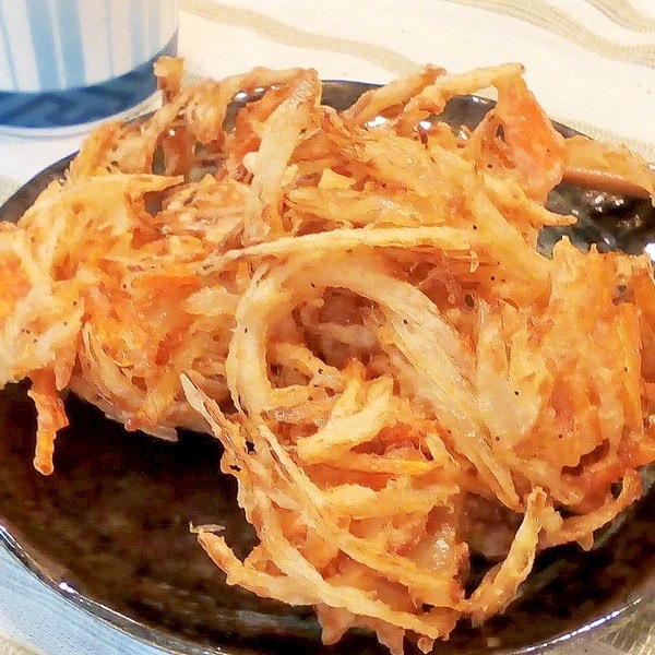 上げることで一層引き立つ濃厚な甘みと、外側のサクサクとした衣、中に加えた玉ねぎや人参の食感が、絶妙なハーモニーを奏でます。