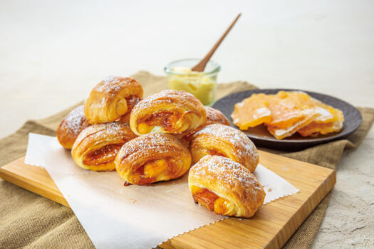 やさしい甘さの干し芋を香ばしいキャラメルソースで引き立て、まろやかなカスタードとあわせて、サクッと軽いデニッシュに包みました。
