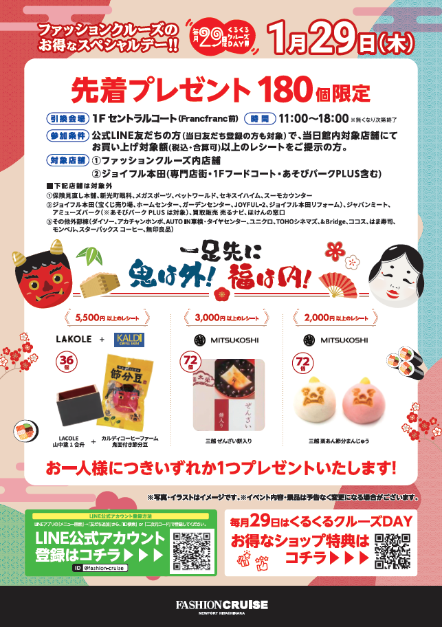 公式LINE友だちの方(当日友だち登録の方も対象)で、当日館内対象店舗にて