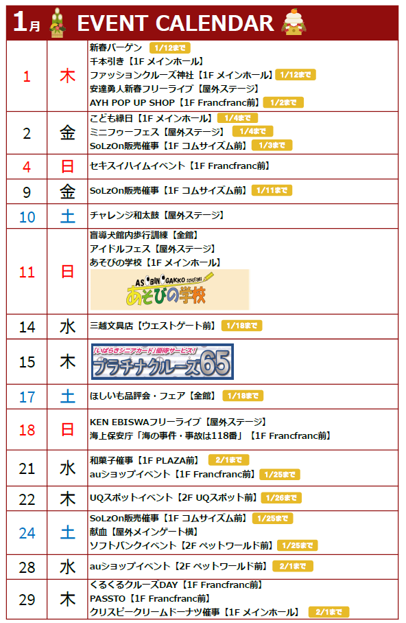 > 1月イベントカレンダー