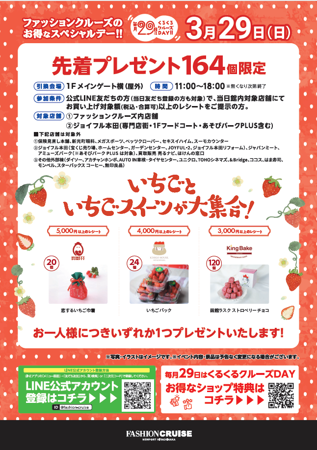 公式LINE友だちの方(当日友だち登録の方も対象)で、当日館内対象店舗にて