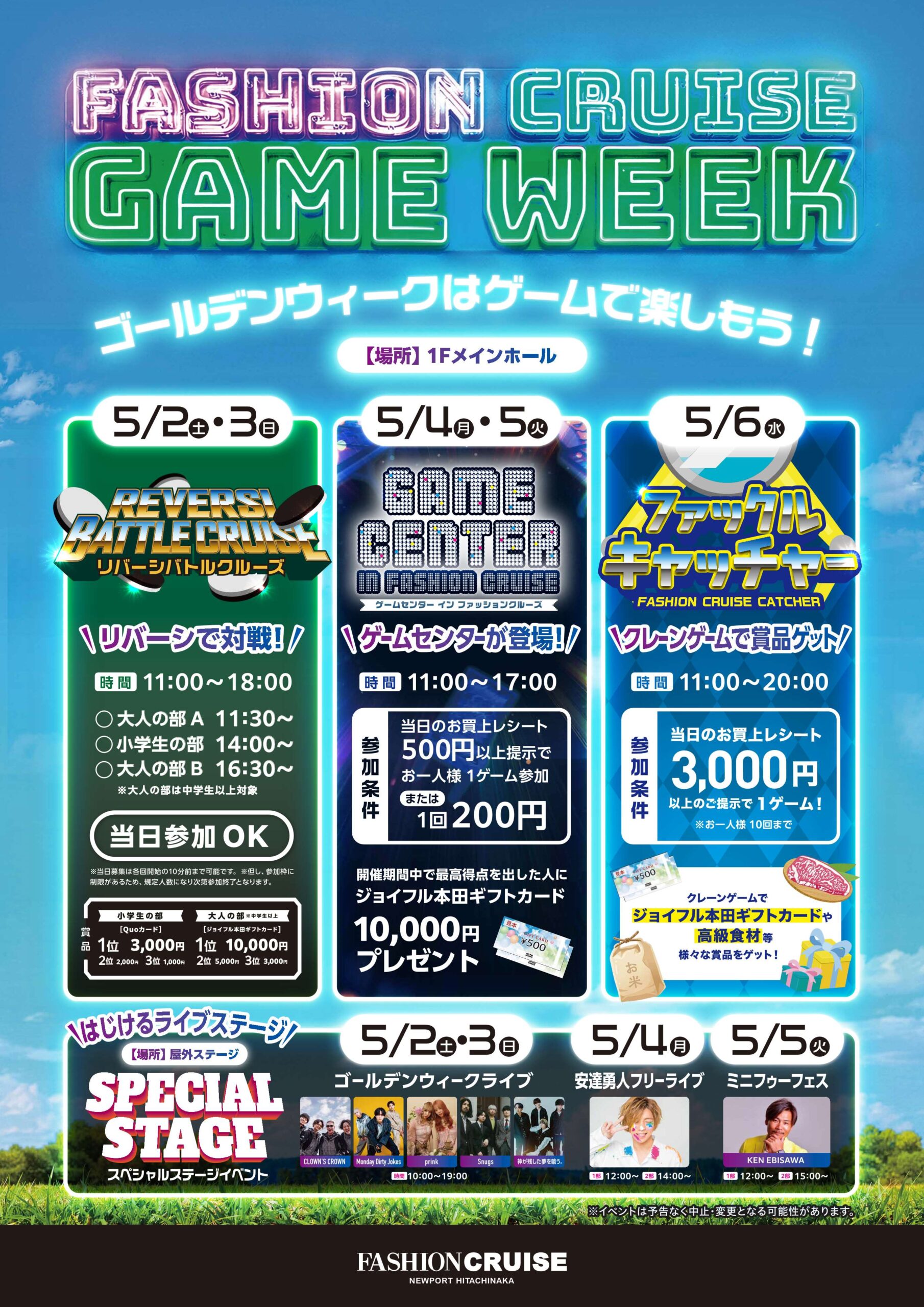 5/2(土)~5/6(水・祝) FASHION CRUISE GAME WEEK