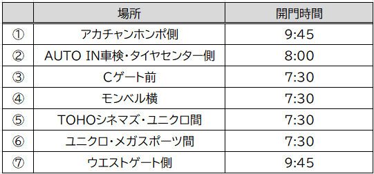 近隣の交通規制に伴い、施設「駐車場ゲート」開門時間を以下の通り、変更させていただきます。