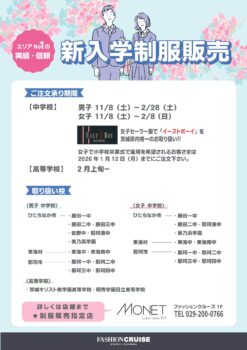 トップページ > ショップニュース > MONET (モネ) にて学生服のご注文承ります ✿